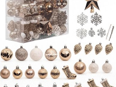 6 different colors and designs to choose from Silver/White/Blue/Red and Mix Accents Traditional Christmas Tree Ornament Set - Shatterproof Plastic Hanging Ornaments for Christmas.
