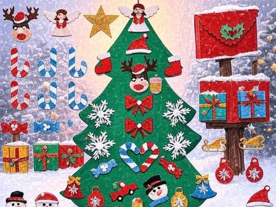 DIY Felt Christmas Tree for Kids, 3ft Christmas Tree with 30pcs Glitter Ornaments for Kids Xmas Gifts Christmas Door Wall Hanging Decorations.